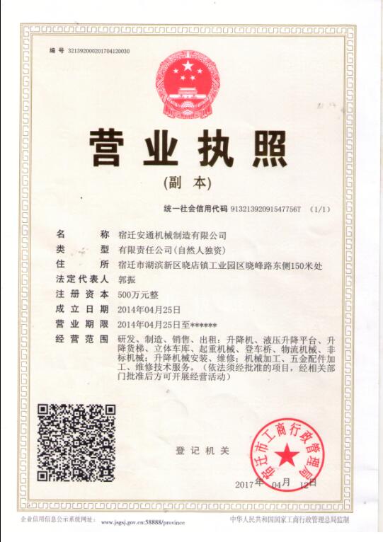 宿遷安通機(jī)械制造有限公司 研發(fā)生產(chǎn)銷售液壓升降平臺及液壓登車橋物流機(jī)械設(shè)備,經(jīng)過多年對液壓升降平臺、液壓登車橋的研究和探索,專業(yè)技術(shù)和經(jīng)驗(yàn),高品質(zhì)的產(chǎn)品。我公司位于江蘇省宿遷市湖濱新城曉店鎮(zhèn),宿遷市的北大門,東有穿境而過的宿新公路,南與宿遷市主城區(qū)僅一河之隔,西臨駱馬湖,北與新沂市隔河相望,環(huán)抱江蘇省AAA級景區(qū)三臺山森林公園。