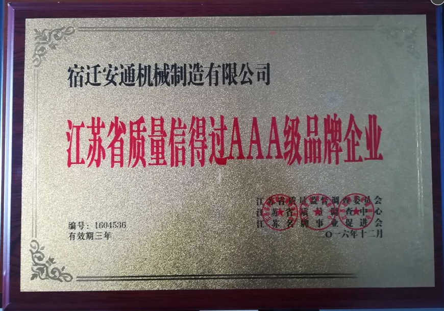 公司通過江蘇省質(zhì)量信得過AAA及品牌企業(yè),本著“精于思,誠于行,臻于品”的經(jīng)營理念,以“開放、科學(xué)、創(chuàng)新、協(xié)作”的企業(yè)精神,為客戶提供卓越的產(chǎn)品。我們視產(chǎn)品的質(zhì)量如企業(yè)的生命,放心的品質(zhì)、更優(yōu)質(zhì)的服務(wù),是安通機(jī)械對每個客戶的承諾。在以“質(zhì)量最好、價格最低、服務(wù)最優(yōu)”的承諾下,愿與您真誠合作,衷心地希望廣大用戶了解和使用我公司的產(chǎn)品,開展更加廣泛的合作??蛻舻陌l(fā)展與成功,是永恒的動力之源,我們愿以精良的產(chǎn)品和優(yōu)質(zhì)的服務(wù)為您的企業(yè)發(fā)展做貢獻(xiàn)。